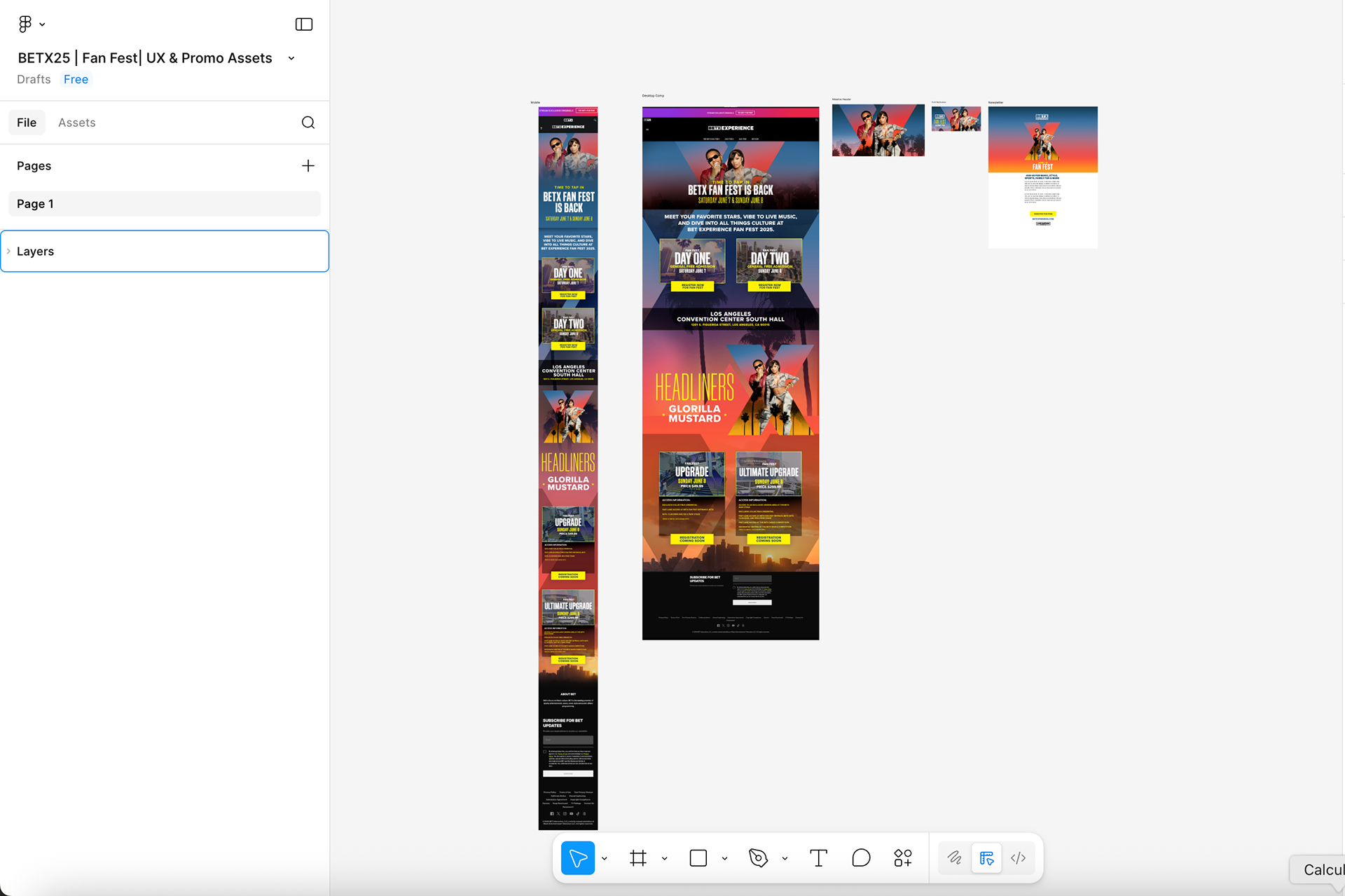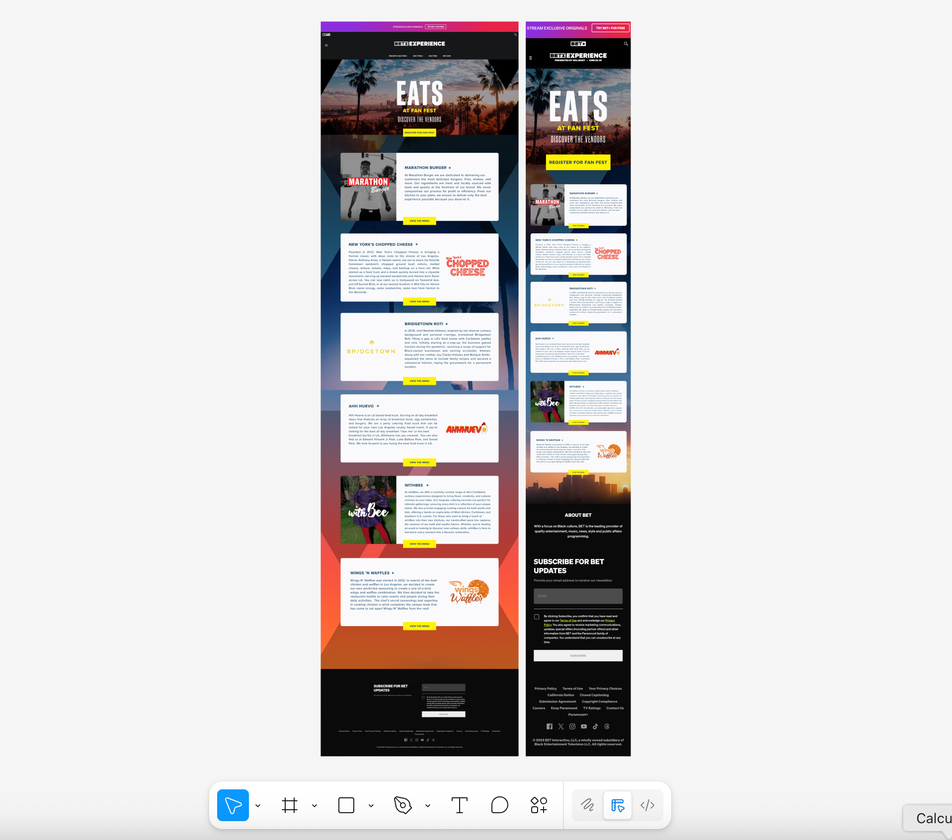 As Senior Designer and acting Art Director, I owned the design of the BETX digital experience end-to-end in Figma. I led the visual direction and execution, building structured layouts and high-fidelity prototypes that translated brand into an interactive platform. I established repeatable design patterns and layout systems to ensure consistency across pages and scalability for implementation and cross-platform execution.