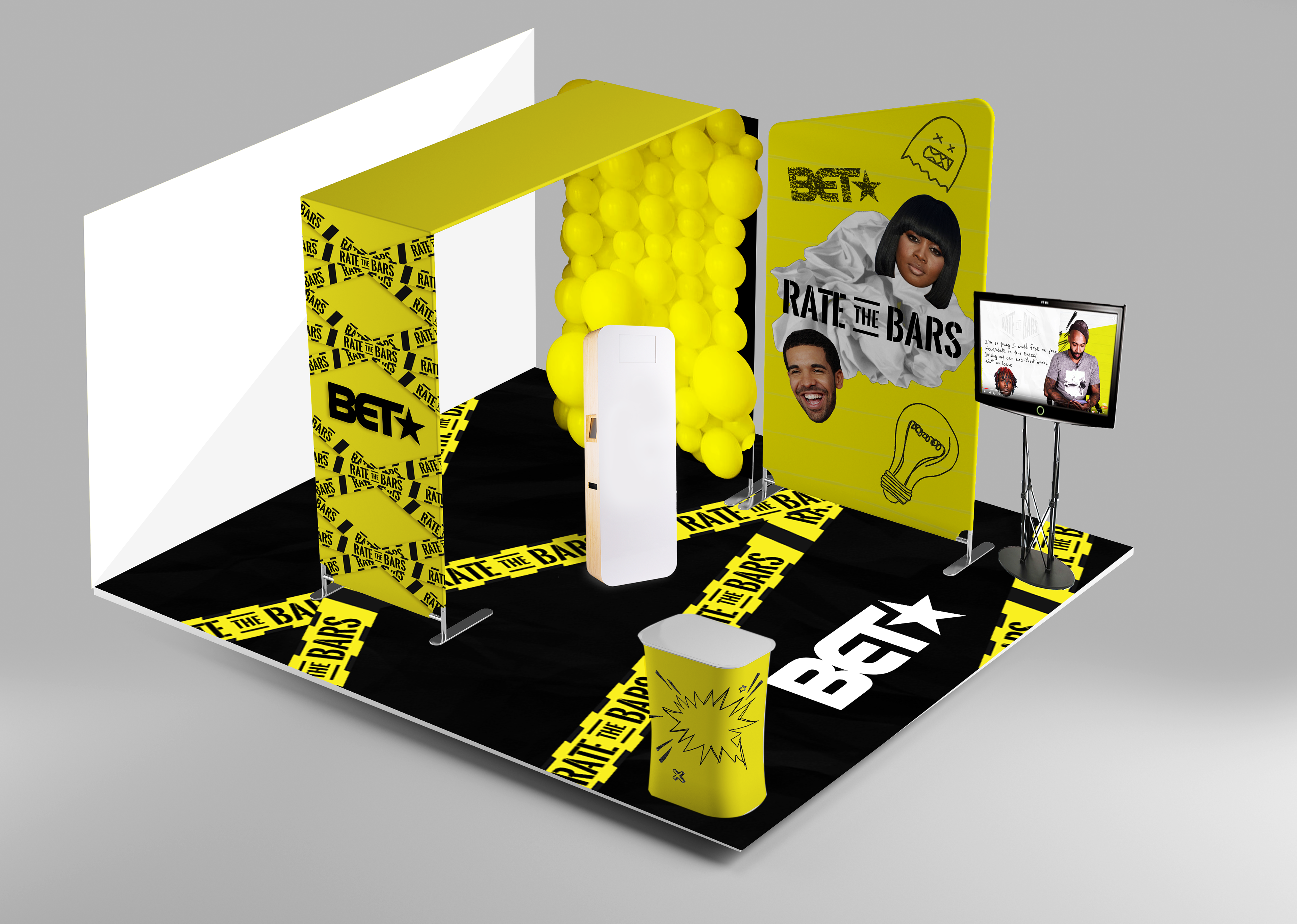 BET Networks delivered culture at Culture Con 2018 with our Rate The Bars booth, inviting guests to interact directly with the essence of the show. I was tasked with designing the booth and supporting graphic assets.