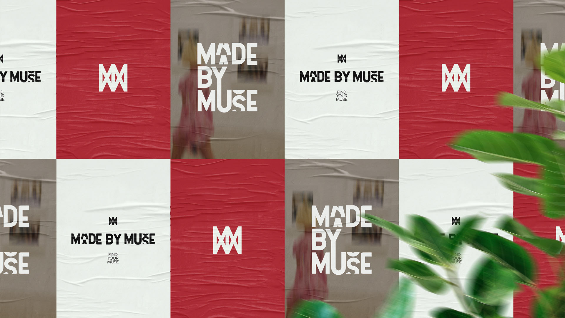 The Made by Muse identity embraces the spirit of artistic inspiration with a bold, contemporary aesthetic. The logotype plays with negative space and geometric cuts, echoing the dynamic, ever-evolving nature of art itself. A striking red-and-white palette reinforces visibility and energy, while versatile applications—posters, signage, and merchandise—bring the brand into both urban and gallery contexts. The result is a confident, memorable identity that positions the gallery as a cultural hub for modern creativity.