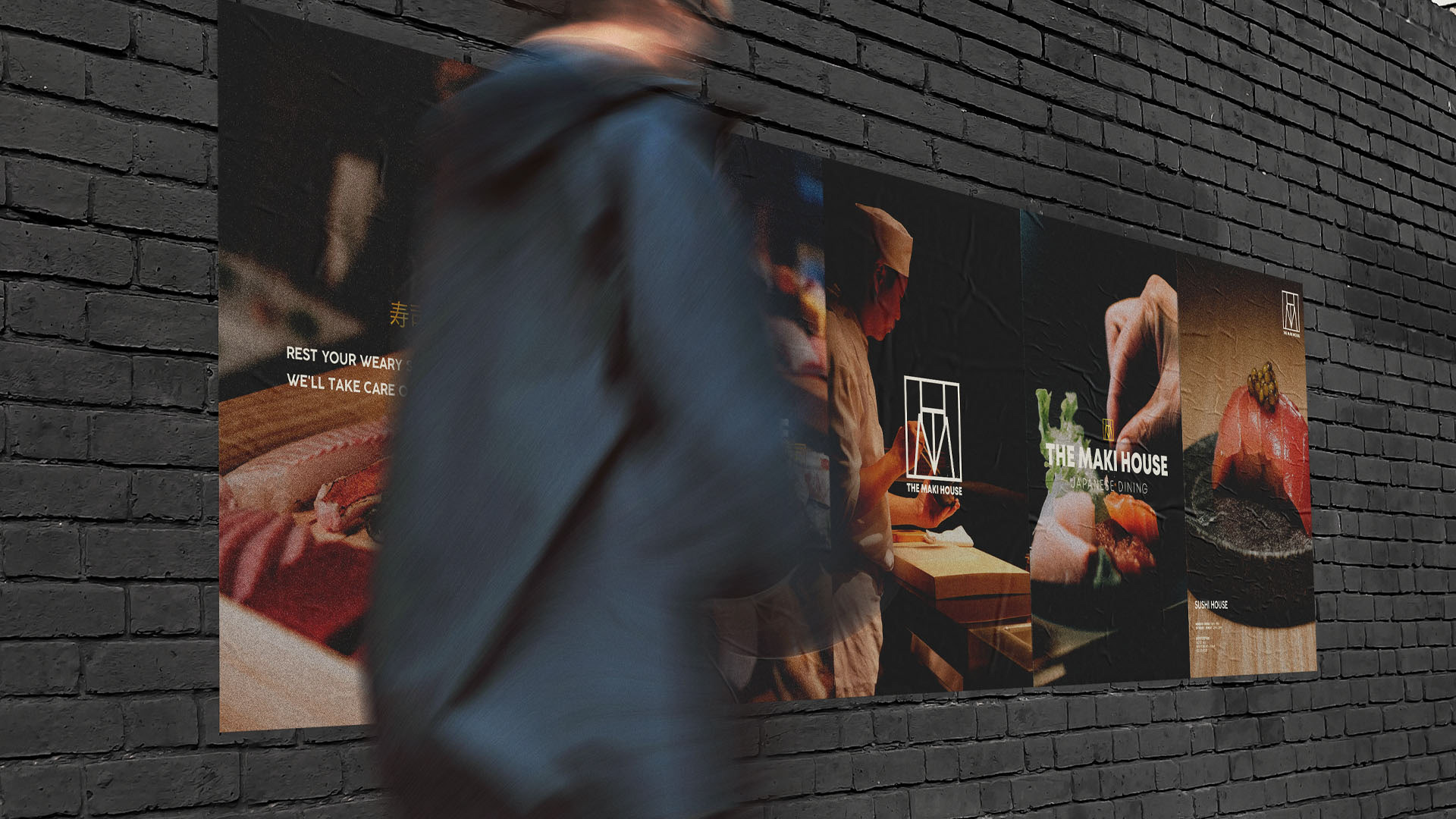 The identity for The Maki House captures the refined artistry of Japanese dining while presenting it through a bold, modern lens. A clean geometric logo, rich navy and gold palette, and confident typography create an elevated identity, while warm, approachable messaging makes the dining experience feel both refined and welcoming.